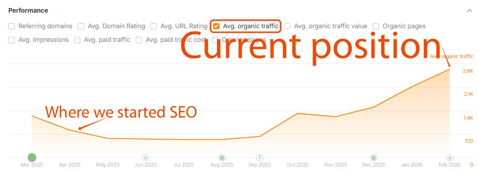 An increase from 827 to 3,400 in organic traffic in just 10 months of applied SEO strategies.