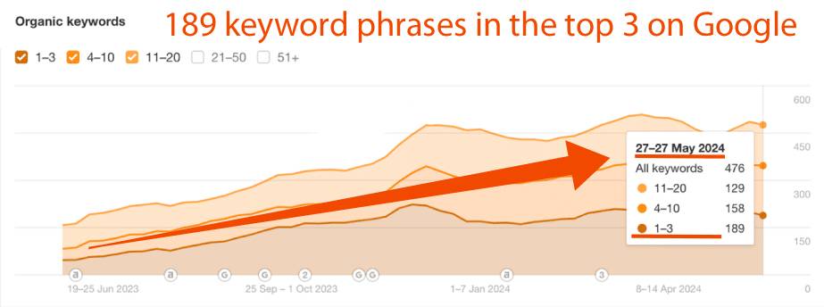 476 Keywords Ranked Organically