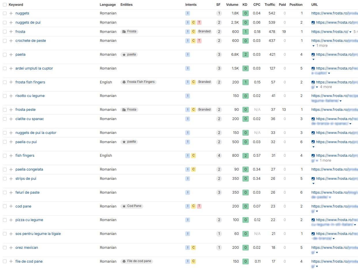 O vizibilitate extinsă pentru 98 cuvinte cheie, dintre care 82 sunt clasate pe prima pagina de rezultate Google.