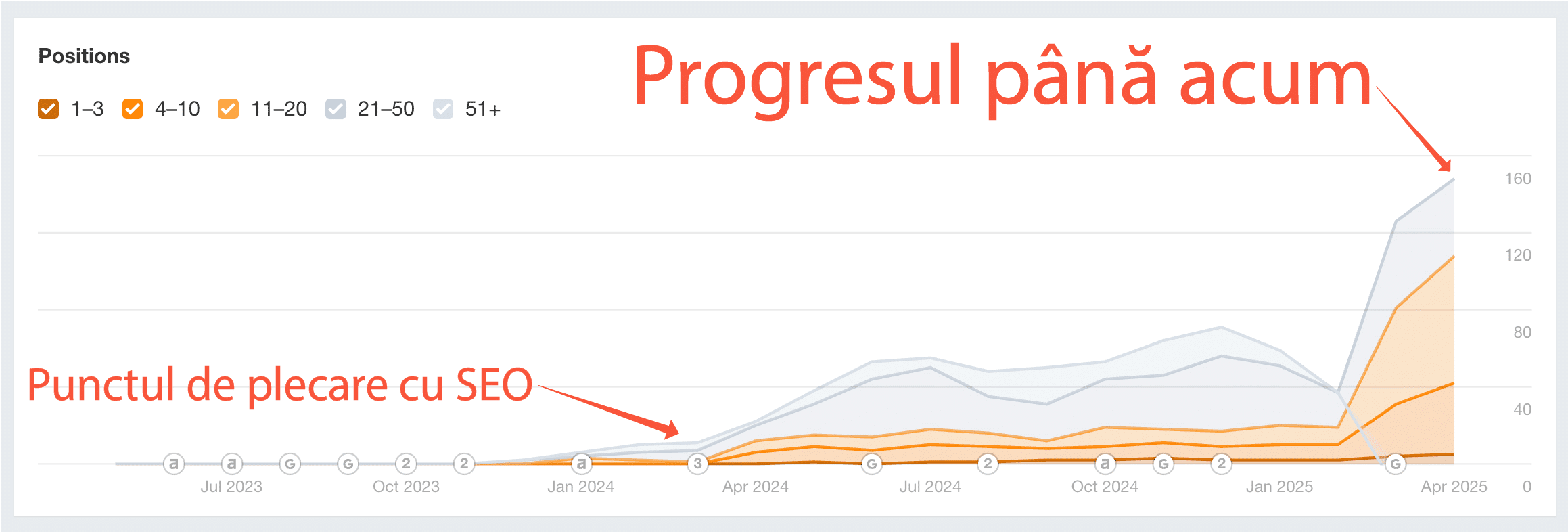 O creștere semnificativă a vizitatorilor organici, aducând mai multă vizibilitate și potențiali clienți.