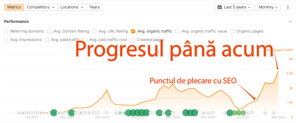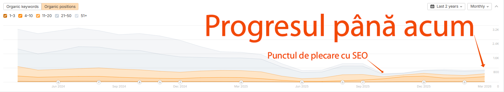 O creștere semnificativă a vizitatorilor organici, aducând mai multă vizibilitate și potențiali clienți.